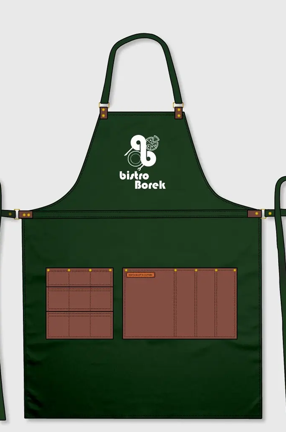 Zielony fartuch z logo Bistro Borek